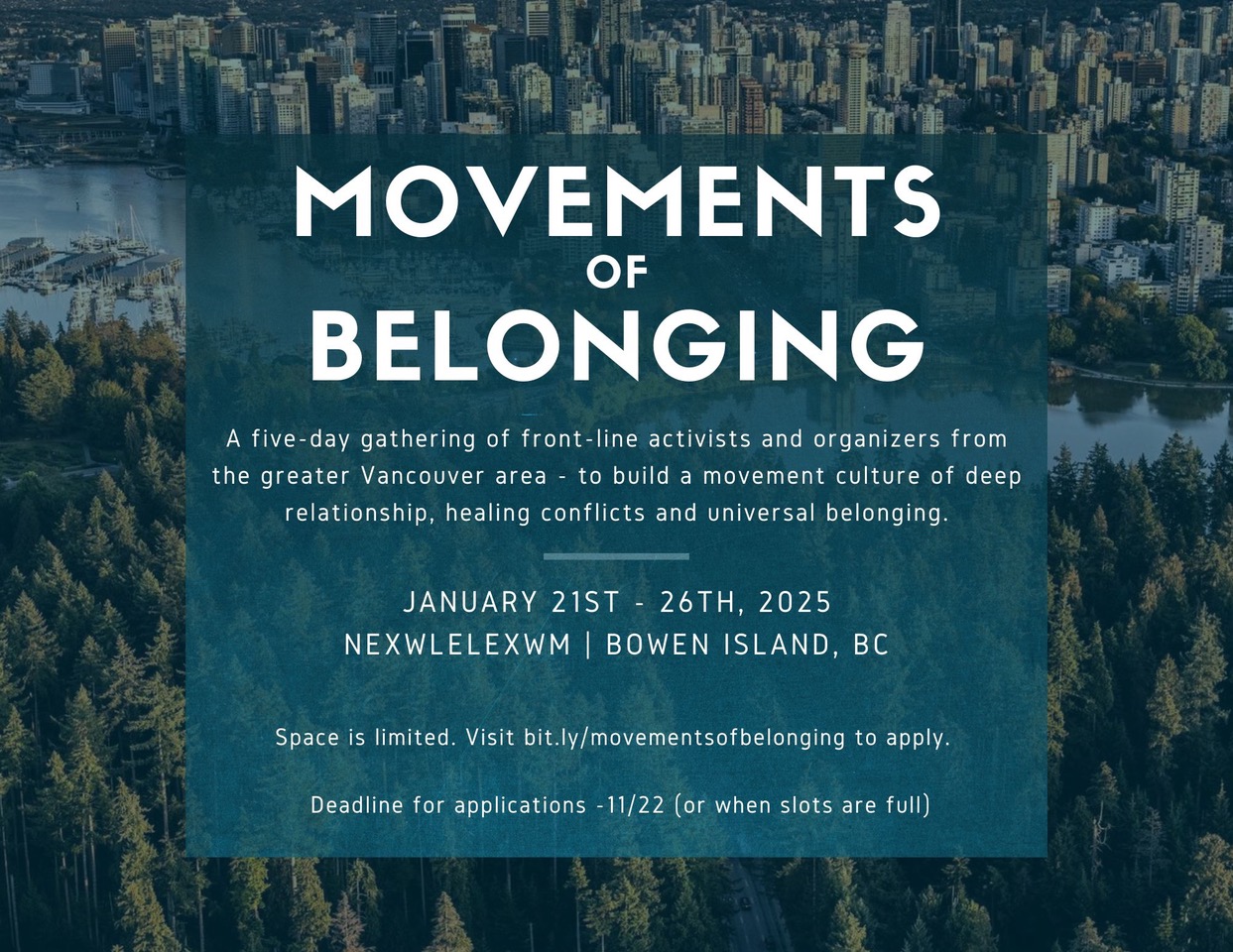 will raise our collective capacity for creating movements that offer belonging and meaning as we work towards a more just and healthy